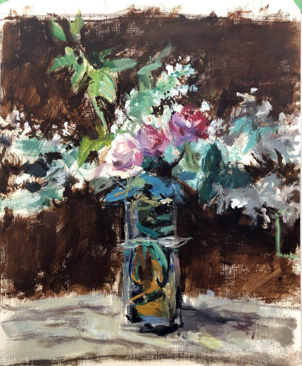 Blocking in always begins with big brushes, to locate everything and establish colour family and main values. The next step in the painting is to use smaller brushes and go in for specifics of detail, sharpening edges and creating stronger focal points. I want the viewer to feel immersed in the space, with lots to encourage the eye to keep meandering, discovering new subtleties and maybe even surprises. It’s important to me that a painting unfold for the viewer slowly, to withstand the test of time.
